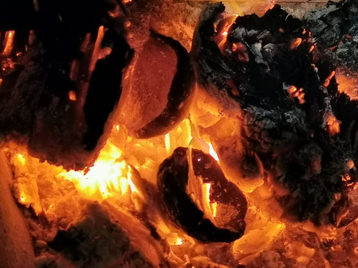 Die ersten Versuche mit selbstgefundenem Ton auf El Hierro... die Werkstatteinrichtung ist noch sehr einfach und der offene Kamin ersetzt den Brennofen...